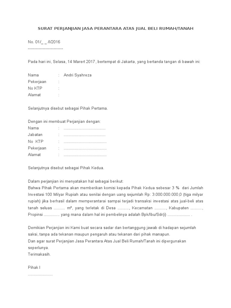 Surat Perjanjian Fee from imgv2-2-f.scribdassets.com Jangan lupa baca ulang spjb sebelum melakukan penandatanganan agar tidak keliru atau merasa rugi di. 40 downloads 1116 views 40kb size. Download surat perjanjian komitmen fee2. Tetapi, dalam beberapa kasus, ada juga surat perjanjian sewa yang. Contoh surat perjanjian kerjasama investasi bocah pintar. Pasal 1 pihak kedua sudah membayarkan. Surat perjanjian jual beli rumah. Sebagai contoh, perjanjian menyewa rumah toko (ruko) dua lantai dengan luas bangunan 750 m2 yang terletak di jalan kebahagiaan nomor 69, jakarta sebagai contoh, pihak terkait melakukan perjanjian jual beli ganja yang mana barang tersebut dinyatakan terlarang secara hukum di indonesia.